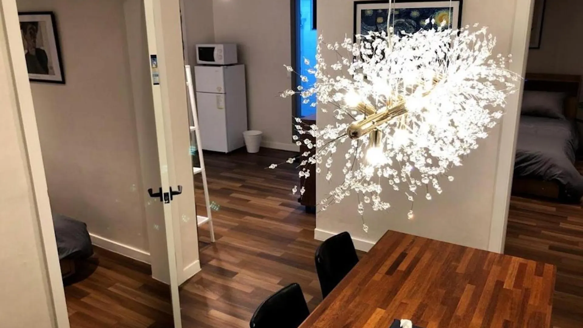 El apartamento está situado en el barrio Mapo-gu de Seúl, a poca distancia del Mercado de Dongjin. El centro de la ciudad se sitúa a 5 km y el Aeropuerto internacional de Gimpo está a 15 km.